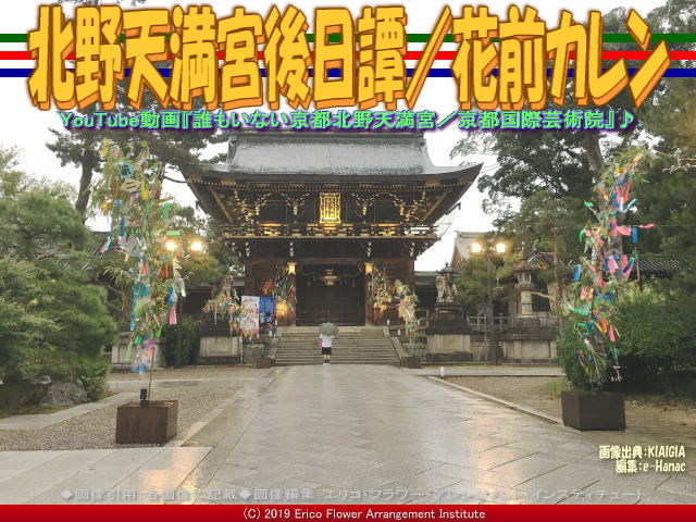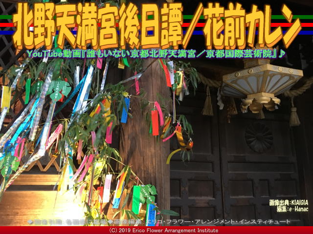 上のタイトル画像は、京都北野天満宮公式インスタ(Instagram)のビジュアルです。 <彦星の行あひをまつかささぎの渡せる橋をわれにかさなむ>と書かれています。 これは京都北野天満宮の御祭神、天満天神・学問の神さん、菅家(かんけ・かんか)、菅公(かんこう)と呼ばれる菅原道真公が大宰府へ大宰員外帥として左遷された時に読んだ和歌です。 【読み】ひこぼしのゆきあいをまつかささぎのわたせるはしをわれにかさなん 【解釈】彦星が逢瀬を待つという鵲(かささぎ)の渡す橋を、私に貸してほしいよ。それを渡って都に戻りたいよ。都の妻に逢いたいよ。 【参考語彙】「かささぎのわたせるはし」とは、<「鵲橋」出典: フリー百科事典『ウィキペディア(Wikipedia)』>を参考にすると、中国の伝説で旧暦の7月7日(2019年は8月7日にあたる)の七夕の日に天の川上にできる橋の名前である。この橋は織姫と彦星が出会うためにできる鵲橋(しゃくはし、かささぎばし)のこと。 2016年から「京の七夕」の会場になった京都北野天満宮には、「御手洗川(みたらしがわ)」が設営されています。 この「御手洗川(みたらしがわ)」は、もともとは北野天満宮の内庭外側の西側、梅の木が点在していたエリアに作られました。 2011年に北野天満宮を撮影した画像をご覧ください。 YouTube版<梅の咲く頃の京都北野天満宮のYouTubeビデオ>です。 【北野天満宮七夕祭(8)/花前カレン 02】 2016年からは京都北野天満宮は「京の七夕」のメインイベントの一つとして機能しています。 京都北野天満宮がコアの「北野紙屋川エリア会場」では、上七軒界隈、今出川通北野門前界隈、北野商店街界隈、大将軍商店街界隈など地域が一丸となって「京の七夕」イベントに参画してスケールアップ。 そして千年の都古都京都を活かした独自のアミューズメント展開して、今ではインバウンド効果覿面、世界的に注目されて来ています。 色とりどりの七夕祭りの笹飾り、豊臣秀吉構築の史跡・御土居(おどい)の拝観、ライトアップされた境内の夜間拝観、御手洗川足つけ燈明神事、そして特別神事「国宝御本殿石の間通り抜け神事」など、茹だる暑さの夏の京都に涼風を齎してくれるイベントが用意されています。・・・つづく このブログページは、我が非営利型一般社団法人京都国際芸術院(法人番号7130005015305/略称:KIAIGIA/キアイジャ/公式ページ/Facebookページ/公式Twitter/代表のTwitter)花の代表、北洞院流華法道の家元として指揮を執る私北洞院エリ子花前カレン(公式ブログ、Profile、facebook、Twitter、公式HP1、公式HP2)が管理者です。 我が非営利型一般社団法人京都国際芸術院は、昨年2018年5月に京都中京の四条に法人設立した組織です。設立当初は、書と花をコアにして、書は、吉祥院心龍北洞院流書法道正師範(公式ブログ、公式Blog2アメブロ、facebook、Instagram、YouTube、公式HP)、そして花は私北洞院エリ子花前カレンの二人で、京都と大阪と兵庫で活動しています。 設立の2018年は私は、特に一般社団法人京都国際芸術院の設立(『社団法人化への歩み(6)/京都国際芸術院』など)や奈良ホテルでの記念式典(『奈良ホテル書花展(10)/京都国際芸術院』など)、出版事業部の初仕事(『アートの旅/一般社団法人京都国際芸術院』『アートの旅美術館/エリ子花前カレン』『アートの旅facebook記事/京都国際芸術院』『アートの旅松本編集長/京都国際芸術院』など)、産直市場よってって新規開店(『よってって和泉中央(4)/エリ子花前カレン』など)でのプロパー作品展示販売、そして公式ページの立上げやFcebookページやTwitterの開設、そして個人的には動画編集ビデオ制作の学習(『ビデオ制作勉強会(9)/エリ子花前カレン』など)等、ネット関連の仕事も増えて、有難くもどんどん忙しくなってきました。 また、2019年4月には京都下鴨北大路通りに北大路WS2(ワークショップ・スタジオ)を開設しました。※改装準備中の画像(※引用『北洞院流スタジオ改造(8)/京都国際芸術院』など)はこちら。 最近の我が非営利型一般社団法人京都国際芸術院の実働としては、書と花と出版をメインテーマにして、教室運営、出張講座、イベント企画と運営、出版、ウェッブ授業とデジタルコンテンツ作成と提供、京都四条北洞院流書法道と華法道認定の各師範の作品開発・頒布販売(<令和時代><作品価格@令和時代>)などを行っています。 とりわけ人気のハーバリウム体験や講座・レッスン関連ですこし例に挙げると、今までに 『ハーバリウム製作体験(3)/有真香会館』 『岸和田教育委員会FA講座(5)/エリ子花前カレン』『煉瓦館ハーバリウム(5)/北洞院流』を行い、一部ブログを作成して紹介してあります。 ハーバリウム体験授業の中で必ず口頭で紹介させて頂きます「アートの旅」は、私たち非営利型一般社団法人京都国際芸術院が企画・出版しています小冊子の名称で、英語名は“THE TRAVEL OF ART”です。 「アートの旅」は、日本の各地の美術館や博物館から掲載ご許可を頂いて展示作品や催事などを紹介するフリーペーパー