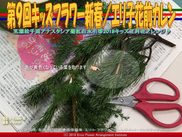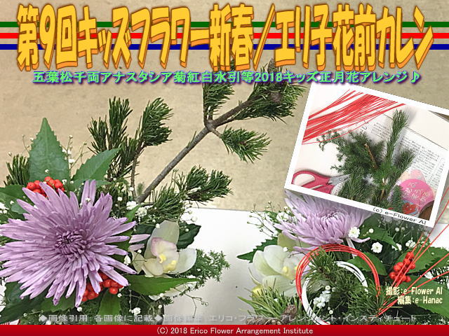 【第9回キッズフラワー新春(3)/エリ子花前カレン 01】 第9回キッズフラワー新春(3)/エリ子花前カレン画像01 五葉松千両アナスタシア菊紅白水引等2018キッズ正月花アレンジ♪ 画像はイメージです。