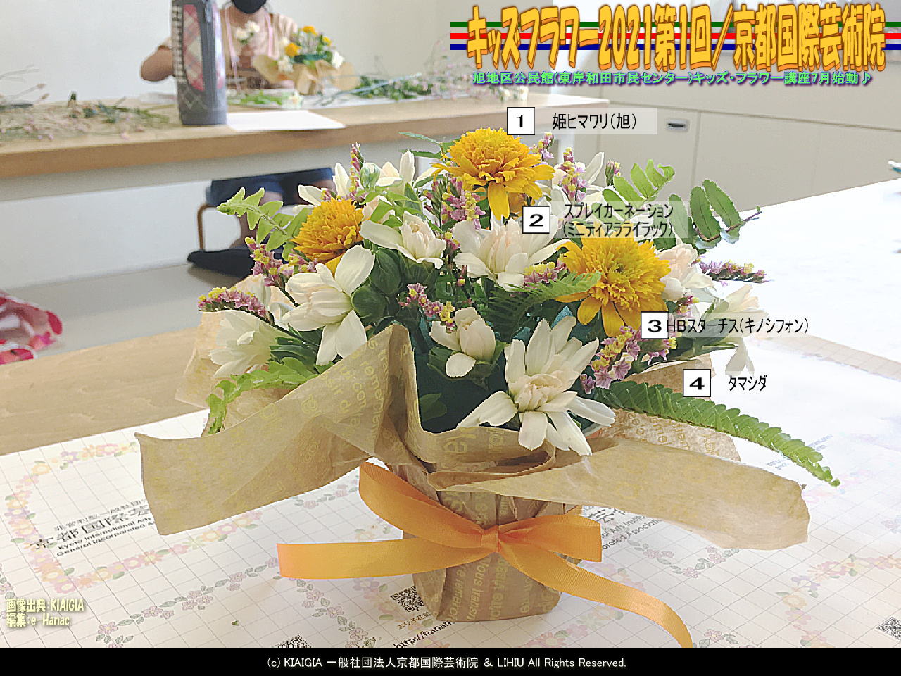 ■タグ=キッズフラワー2021第1回 キッズフラワー 京都国際芸術院 旭地区公民館 東岸和田市民センター キッズ・フラワー 花前カレン 北洞院 HBスターチス キノシフォン