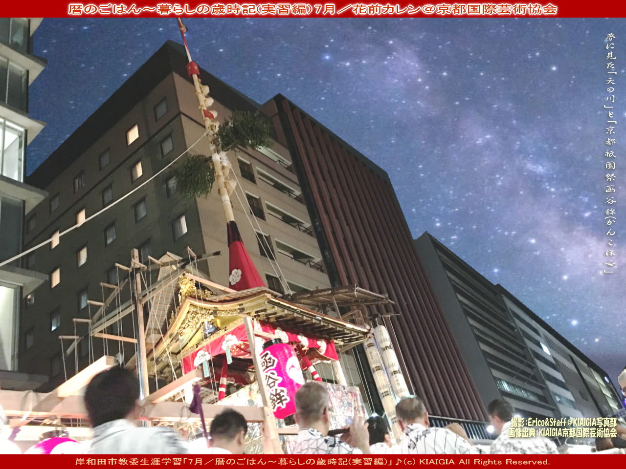 ■タグ=暮らしの歳時記 暦のごはん 祇園祭 七夕伝説 天の川 天野川 星田 函谷鉾 京都国際芸術協会 花前カレン