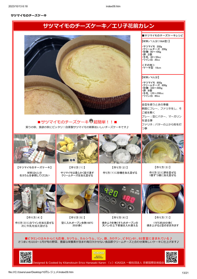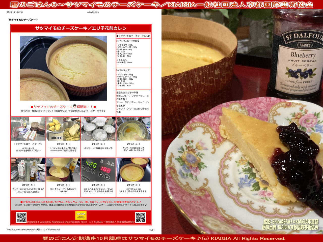 ■タグ=暦のごはん チーズケーキ 花前カレン 生涯学習 定期講座 サツマイモのチーズケーキ サツマイモ 北洞院エリ子 家元エリ子 京都国際芸術協会