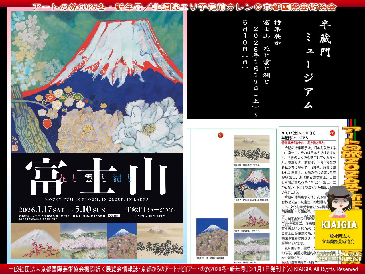 はなさき かれん)が今回出版した「アートの旅2026冬・新年号」の記事から独断でチョイスしたページは、<特集展示 「富士山 花と雲と湖と」>で半蔵門ミュージアムで開催されている展覧会です。