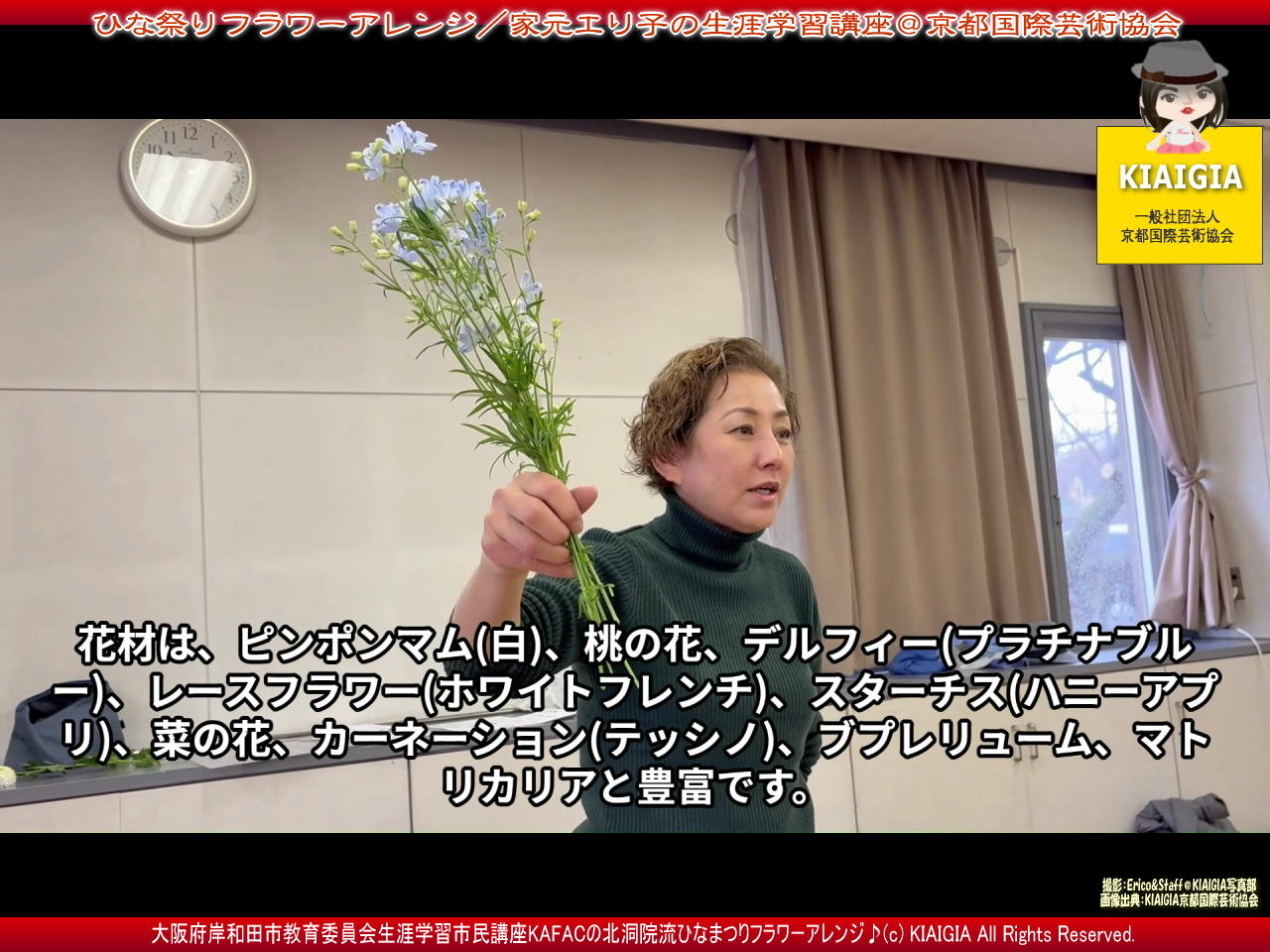 画像サブタイトルは、「大阪府岸和田市教育委員会生涯学習市民講座KAFACの北洞院流ひなまつりフラワーアレンジ♪(c)