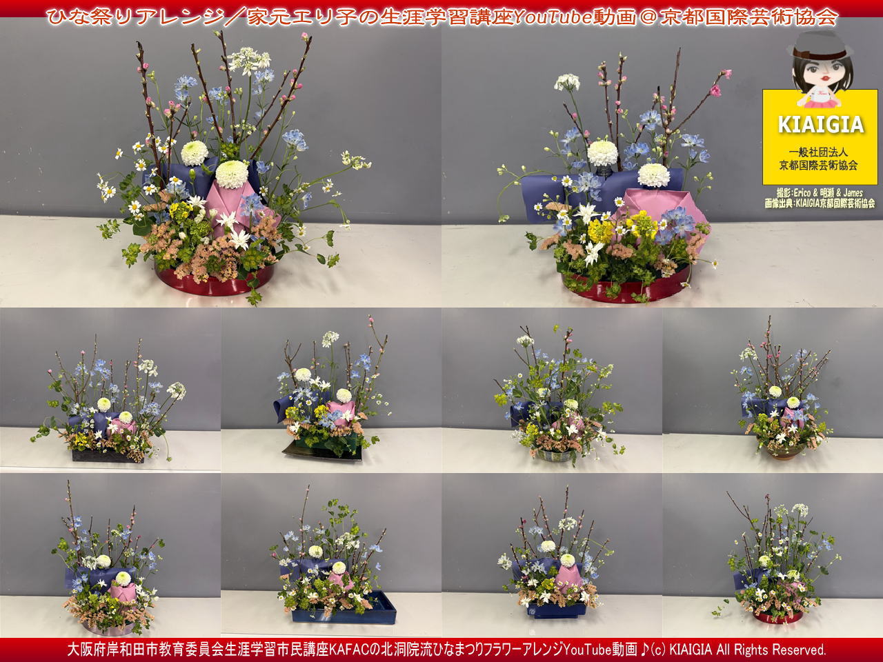 画像タイトルは、「ひな祭りアレンジ/家元エリ子の生涯学習講座YouTube動画@京都国際芸術協会」としています。
