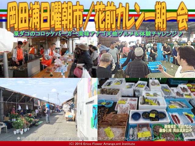【岡田浦日曜朝市/花前カレン一期一会 01】 岡田浦日曜朝市/花前カレン一期一会画像01 泉ダコのコロッケバーガー美味アナゴ天他グルメ&体験チャレンジ♪