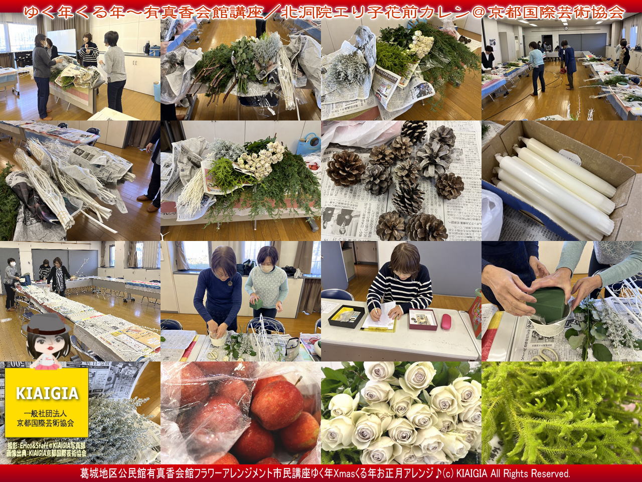 私たち京都四条北洞院流の非営利型一般社団法人京都国際芸術院(法人番号7130005015305/略称:KIAIGIA/キアイジャ/公式ページ/Facebookページ/公式Twitter/代表のTwitter)の私北洞院エリ子花前カレン(公式ブログ、Profile、facebook、Twitter、公式HP1、公式HP2)が、岸和田市教育委員会葛城地区公民館有真香会館(金田隆行館長)さん主催のクリスマスイベントして、先日12月1日(日)にワンオフレッスン「おしゃれなクリスマスツリー」<当学院では、クリスマスXmaasスウィングツリー(クリスマスアレンジ・ノエルツリー「Arbre