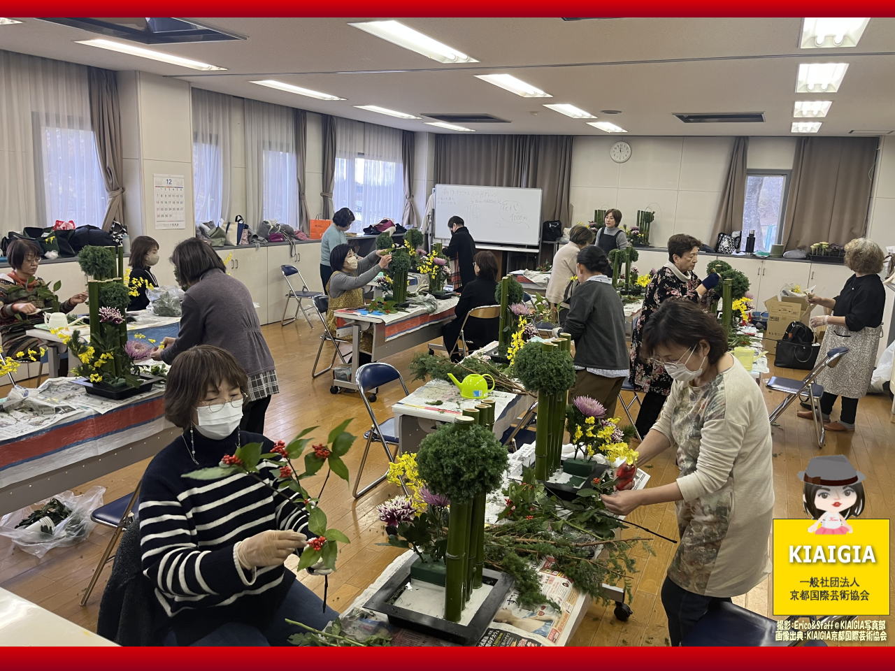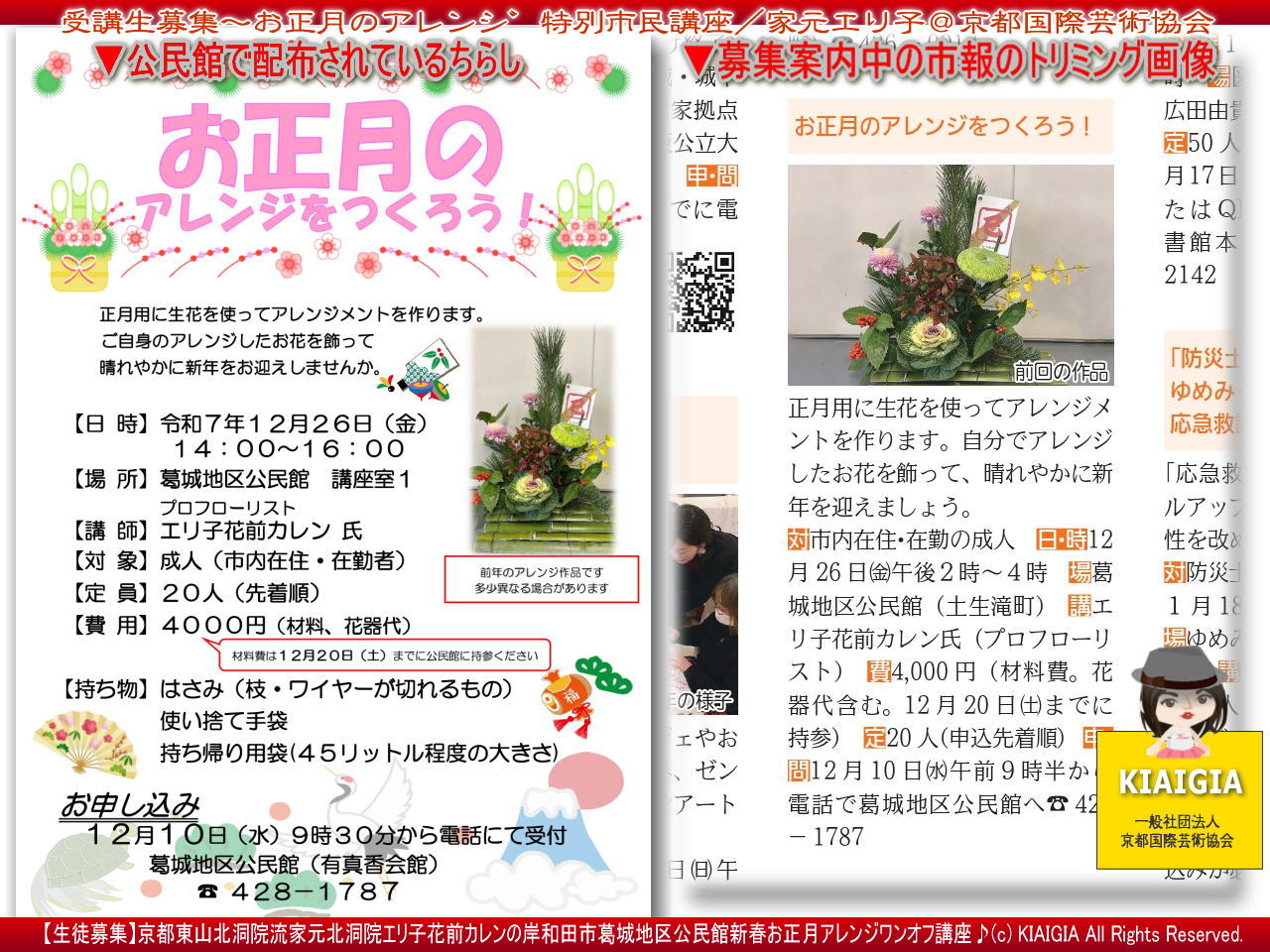 画像タイトルは、「新作お正月アレンジ/家元エリ子の市民講座by花前カレン@京都国際芸術協会」としています。