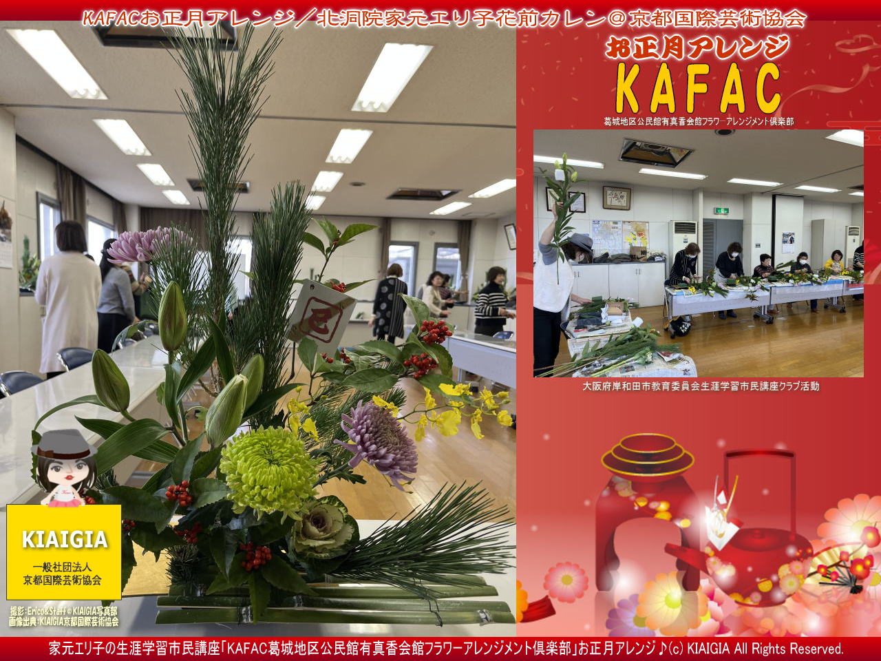 画像サブタイトルは、「大阪府岸和田市教育委員会生涯学習市民講座KAFACの「新作オリジナルお正月アレンジ」で新年の準備♪(c)