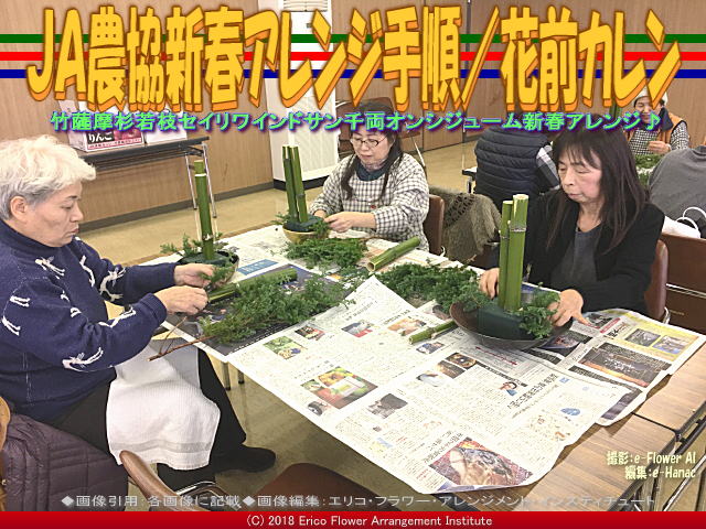 【JA農協新春アレンジ手順(3)/花前カレン 01】 今回の紹介ブログは、『JA農協新春アレンジ手順(3)/花前カレン』です。 前回(昨日)の紹介ブログ『JA農協新春アレンジ手順(2)/花前カレン』の続きです。 前々回(一昨日)の紹介ブログ『JA農協新春アレンジ手順/花前カレン』から続いています。 画像タイトルは、<JA農協新春アレンジ手順/花前カレン>で統一しています。 サブタイトルは、<竹薩摩杉若枝セイリワインドサン千両オンシジューム新春アレンジ♪>としています。 タグは<JA農協、アレンジ、手順、花前カレン、薩摩杉、若枝、セイリワインドサン、千両、オンシジューム、新春アレンジ>としています。 「JAいずみのフラワーアレンジ」については、先日より今までに、 『JAいずみのフラワーアレンジ(6)/花前カレン』 『JAいずみのフラワーアレンジ(5)/花前カレン』 『JAいずみのフラワーアレンジ(4)/花前カレン』 『JAいずみのフラワーアレンジ(3)/花前カレン』 『JAいずみのフラワーアレンジ(2)/花前カレン』 『JAいずみのフラワーアレンジ/花前カレン』 を作成してアップしてあります。 | ||||