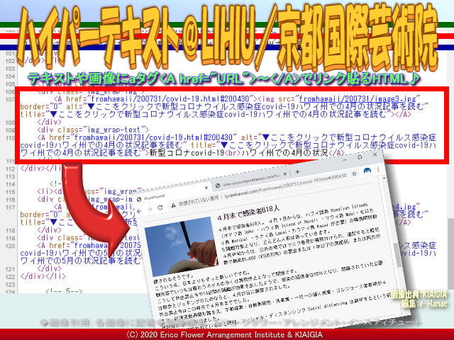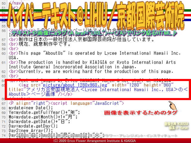 ■タグ=ハイパーテキスト LIHIU 京都国際芸術院 HTML テキストや画像にリンクを貼る aタグ