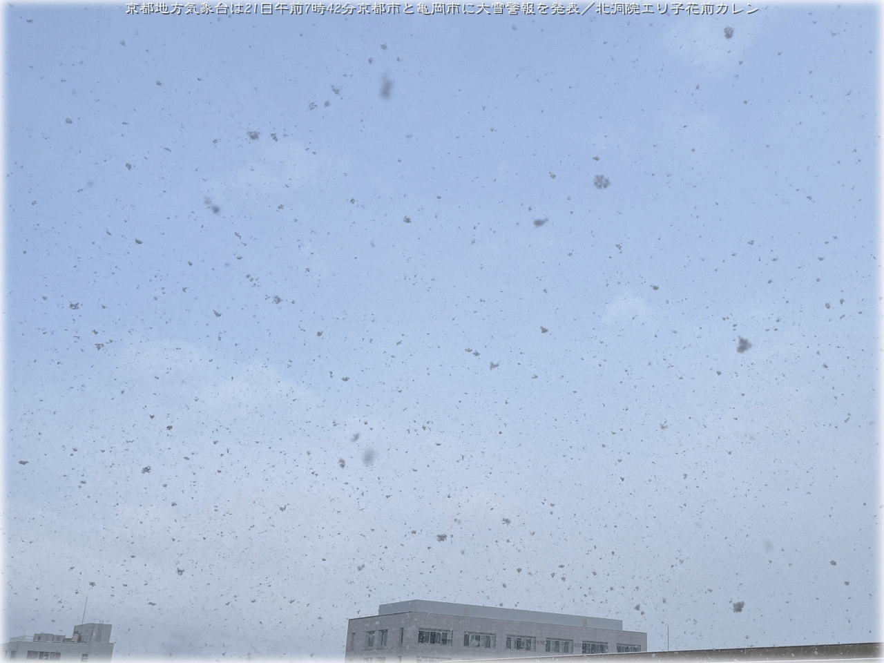 画像サブタイトルは、<京都地方気象台は21日午前7時42分京都市と京都府亀岡市に大雪警報を発表>で統一しています。