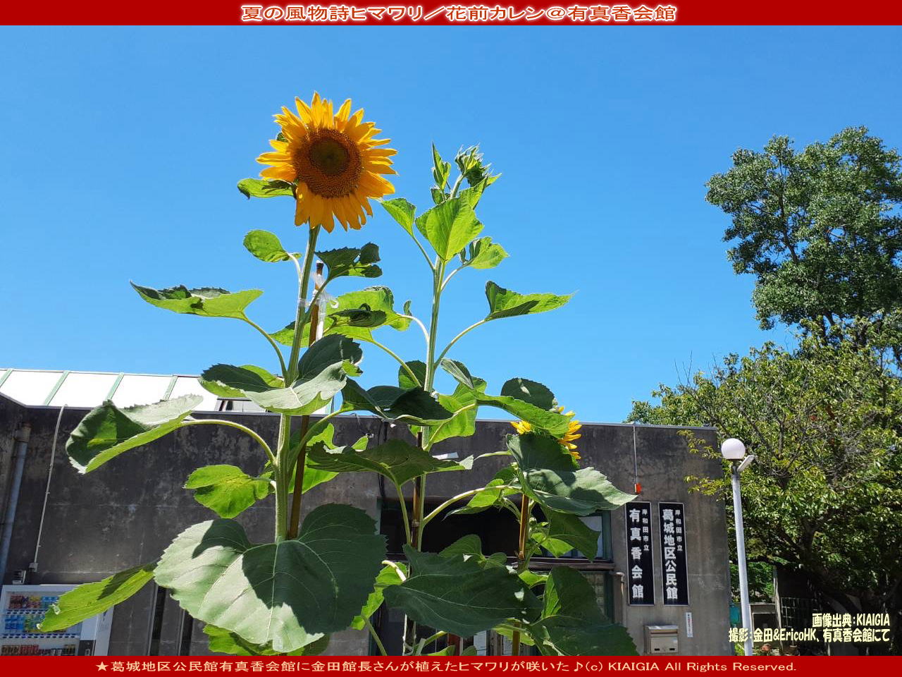 ■サブタイトル=青空の有真香会館に咲いた夏の風物詩ヒマワリby金田♪(c)