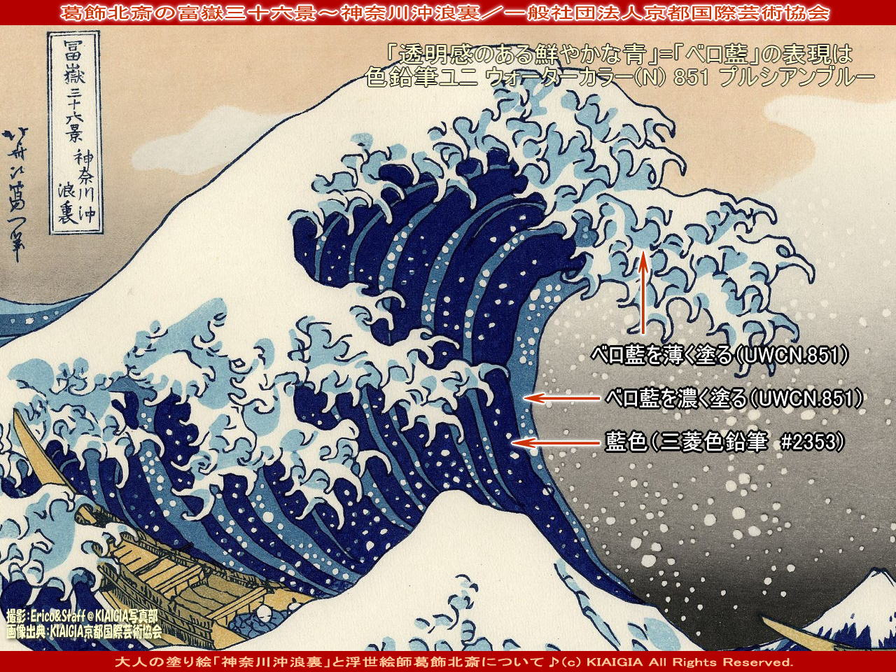 Twitterとfacebook用コメントは、<★葛飾北斎の「富嶽三十六景~神奈川沖浪裏」の波の「ベロ藍」の部分は三菱の色鉛筆<(N)
