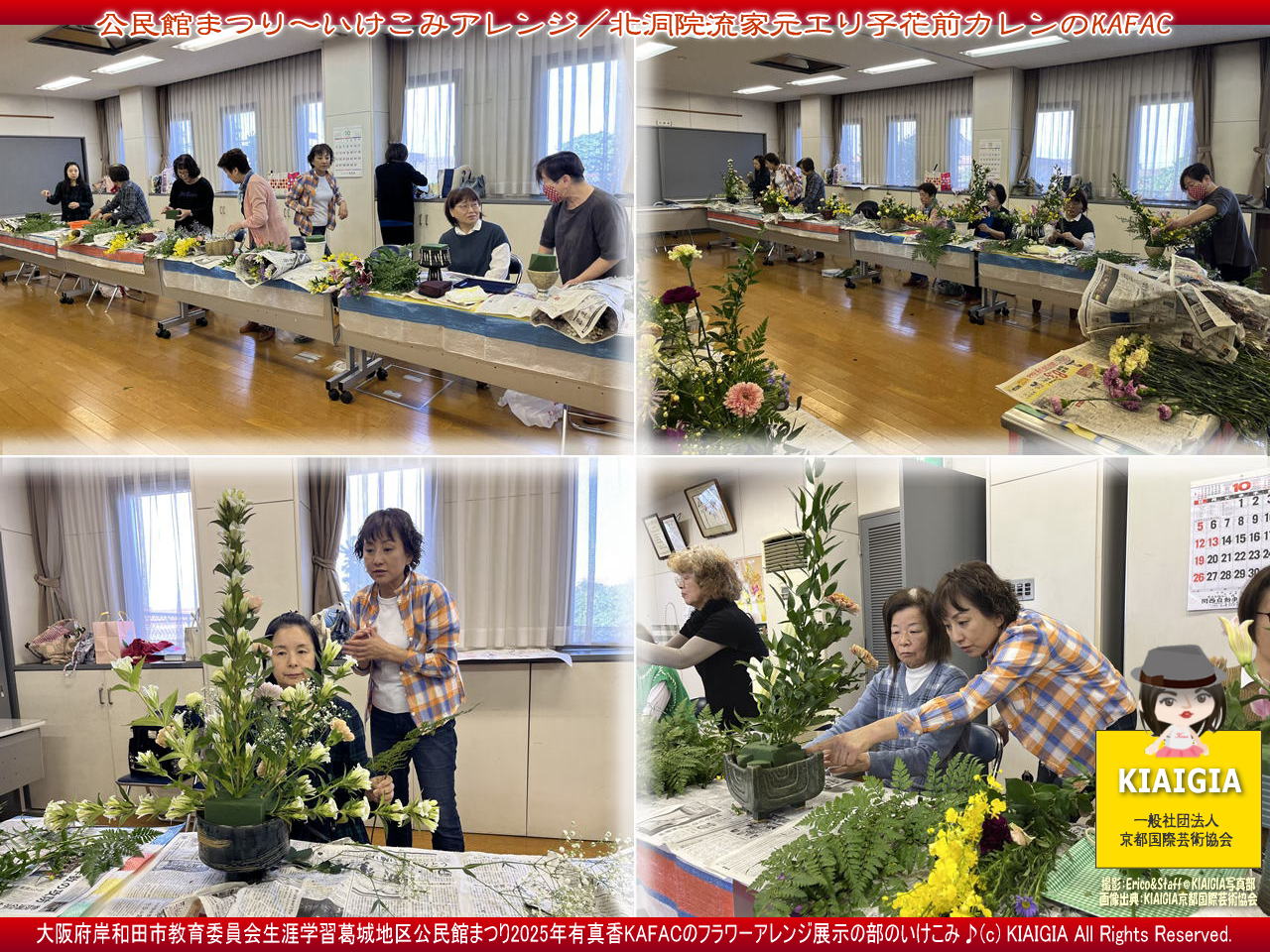 画像タイトルは、「公民館まつり~いけこみアレンジ/北洞院流家元エリ子花前カレンのKAFAC」としています。