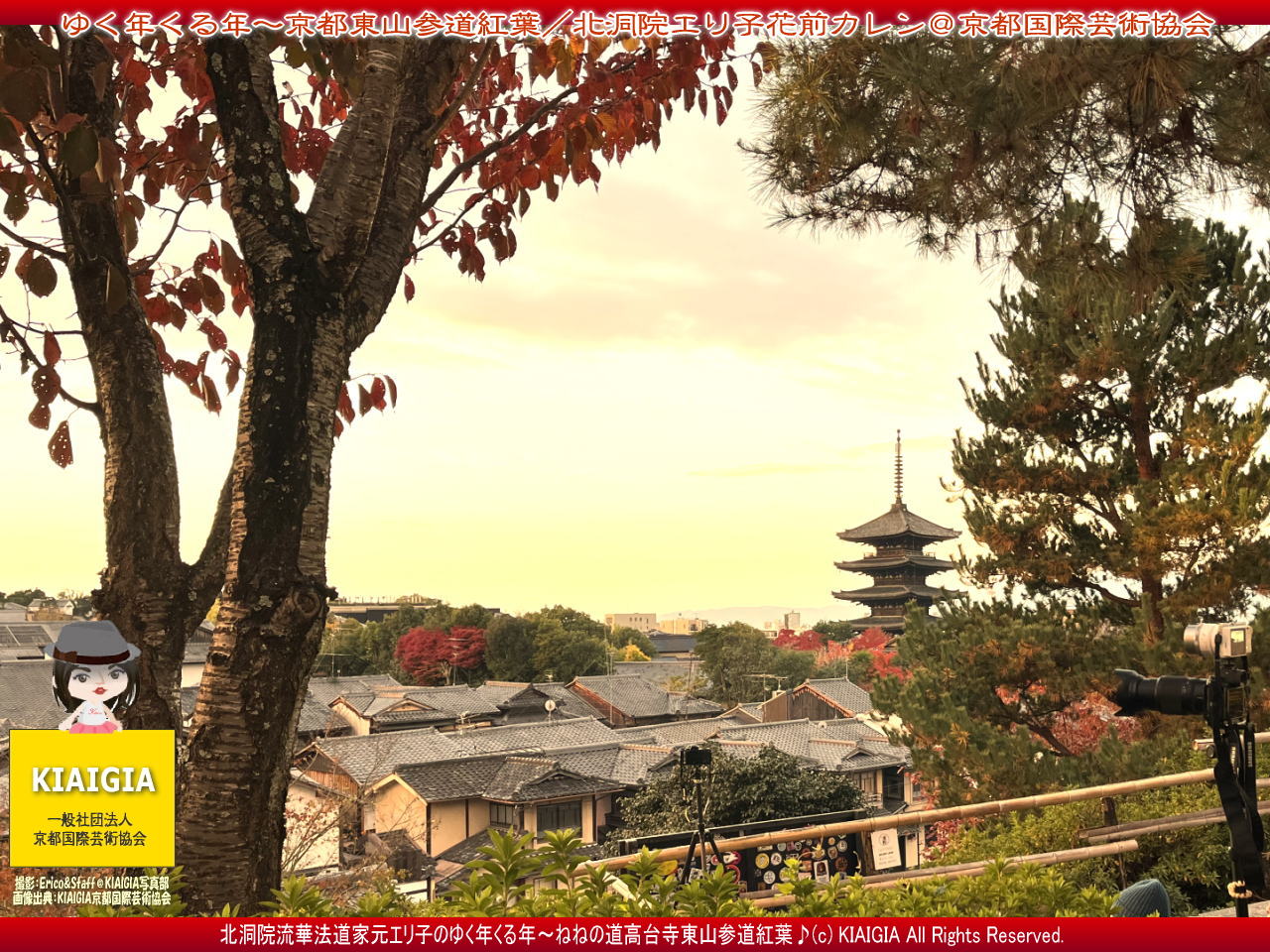 画像タイトルは、ファイルタイトルと違って、「ゆく年くる年~京都東山参道紅葉/北洞院エリ子花前カレン@京都国際芸術協会」で統一しています。