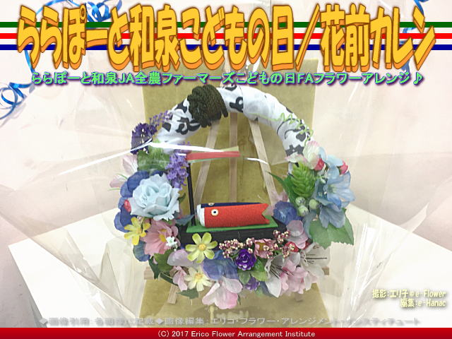 今回の紹介ブログは、『ららぽーと和泉こどもの日(4)/花前カレン』です。 今回のブログ記事「ららぽーと和泉こどもの日/花前カレン」については、先日より以下のブログページ 『ららぽーと和泉こどもの日(3)/花前カレン』 『ららぽーと和泉こどもの日(2)/花前カレン』 『ららぽーと和泉こどもの日/花前カレン』 作成して、アップしています。画像タイトルは、「ららぽーと和泉こどもの日/花前カレン」で統一しています。 ららぽーと和泉のJAファーマーズ・マーケットでの展示販売は、今までに以下のブログ 『ひなまつりフラワーアレンジ/花前カレン』 『ひなまつりフラワーアレンジ(2)/花前カレン』 『ひなまつりフラワーアレンジ(3)/花前カレン』 『ひなまつりフラワーアレンジ(4)/花前カレン』 『ひなまつりフラワーアレンジ(5)/花前カレン』 『ひなまつりフラワーアレンジ(6)/花前カレン』 『ひなまつりフラワーアレンジ(7)/花前カレン』 『ひなまつりフラワーアレンジ(8)/花前カレン』 『ひなまつりフラワーアレンジ(9)/花前カレン』 『ららぽーと和泉Xmasリース(3)/花前カレン』 『ららぽーと和泉Xmasリース(2)/花前カレン』 『ららぽーと和泉Xmasリース/花前カレン』 をアップしてあります、 そして子供の日の鯉のぼりについては以下 『子供の日鯉のぼり(2)/花前カレン』 『子供の日鯉のぼり/花前カレン』 をアップしてあります、あわせてご覧いただければ幸いです これらの、こどもの日用のフラワーアレンジメント作品は、ららぽーと和泉のJA全農ファーマーズ・マーケットで展示販売されました。 FAフラワーアレンジメント作品画像(4) 【ららぽーと和泉こどもの日(4)/花前カレン 01】 私たち、FA(フラワーアレンジメント教室/e-Flower Arrangement Institute)の作品が、とても有名で連日訪問者が絶え間のない、ららぽーと和泉JA全農ファーマーズ・マーケットで展示させていただき、おまけにお値段も付けて頂きウレシイです。 FAフラワーアレンジメント作品画像(5) 【ららぽーと和泉こどもの日(4)/花前カレン 02】 FAフラワーアレンジメント作品画像(6) 【ららぽーと和泉こどもの日(4)/花前カレン 03】 これを展示している事が御縁で、和歌山県かつらぎ町の道の駅 くしがきの里でも展示販売させていただく事になりました。2017年5月の母の日に合わせて、作品制作を行ってまいります。何だか人のつながりで想像を越える展開になってきて、ちょっと驚いている花前カレンの今日この頃です。 因みに、エリ子花前カレンのフラワーアレンジメントのプロフローリスト、花屋の花職人 『プロフローリスト花屋/花前カレン一期一会』 『プロフローリスト花屋(2)/花前カレン』 『プロフローリスト花屋(3)/花前カレン』 『プロフローリスト花屋(4)/花前カレン』 『プロフローリスト花屋(5)/花前カレン』 『プロフローリスト花屋(6)/花前カレン』 『プロフローリスト花屋(7)/花前カレン』 『プロフローリスト花屋(8)/花前カレン』 『プロフローリスト花屋(9)/花前カレン』 として毎日一生懸命です。そしてこれぞと思う季節の枝もの葉ものを求めてウチの裏山の植木山 『植木山の春木々/花前カレン一期一会』 『植木山の春木(2)/花前カレン一期一会』 『植木山の春木(3)/花前カレン一期一会』 『植木山の春木(4)/花前カレン一期一会』 『植木山の春木(5)/花前カレン一期一会』 『植木山の春木(6)/花前カレン一期一会』 『植木山の春木(7)/花前カレン一期一会』 『植木山の春木(8)/花前カレン一期一会』 に出掛けては、切り出しに行きます。 あわせてご覧いただければ幸いです。 □テキスト編集:Fiori, Erico _ |
