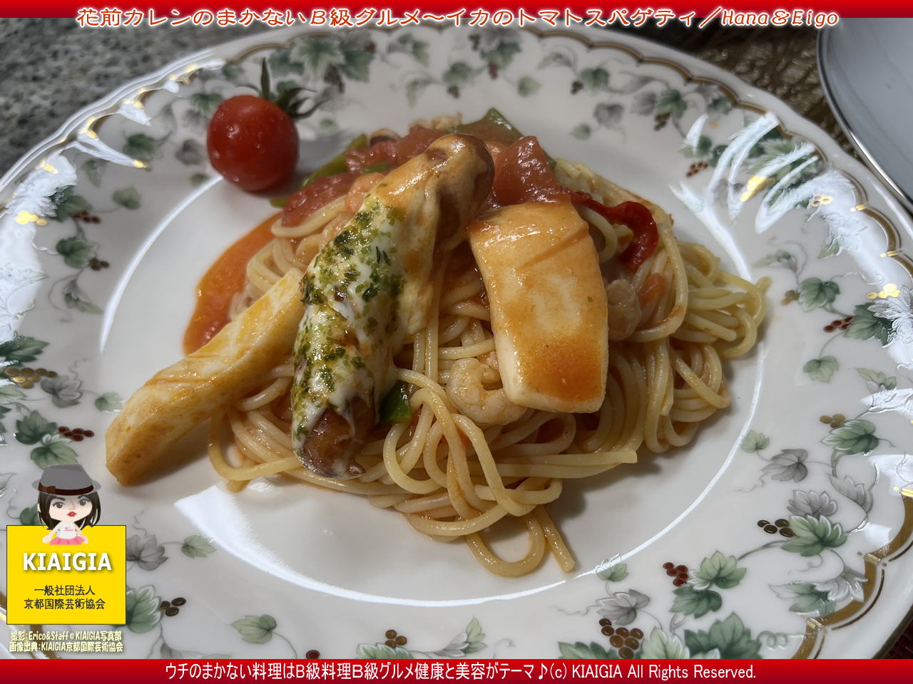 Xツィート(旧Twitter)とfacebook用コメントは、<★「B級料理」「B級グルメ」「健康と美容」がテーマのHana&Eigoのイカのトマトスパゲティ♪>としています。
