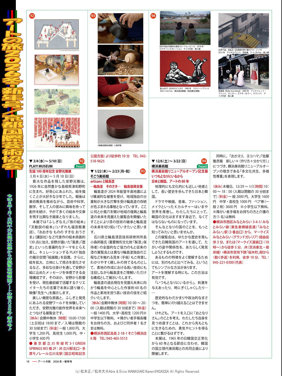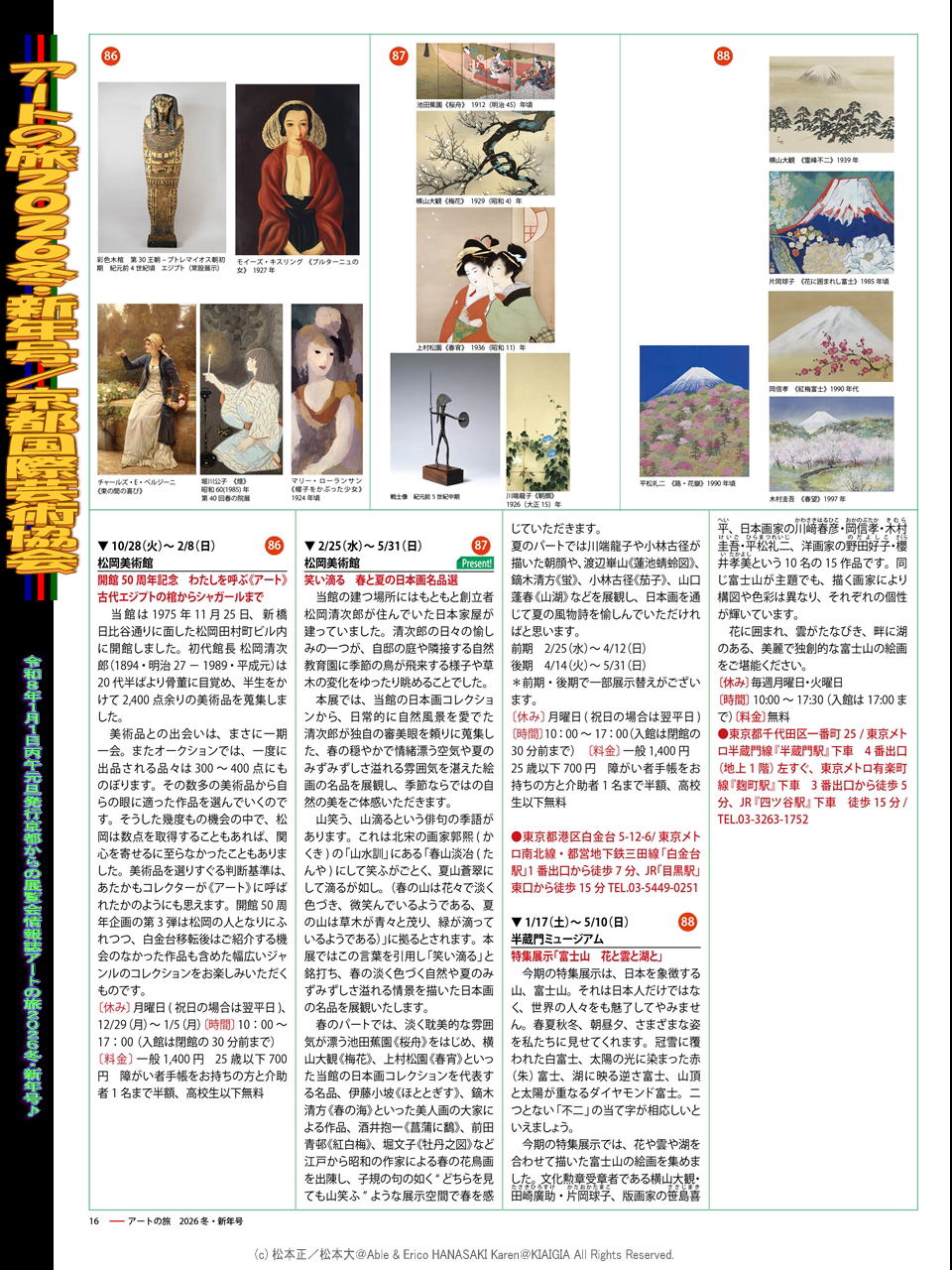 ファイルサブタイトルは、「美術館博物館展覧会情報誌アートの旅2026冬号新年号全頁公開♪(c)