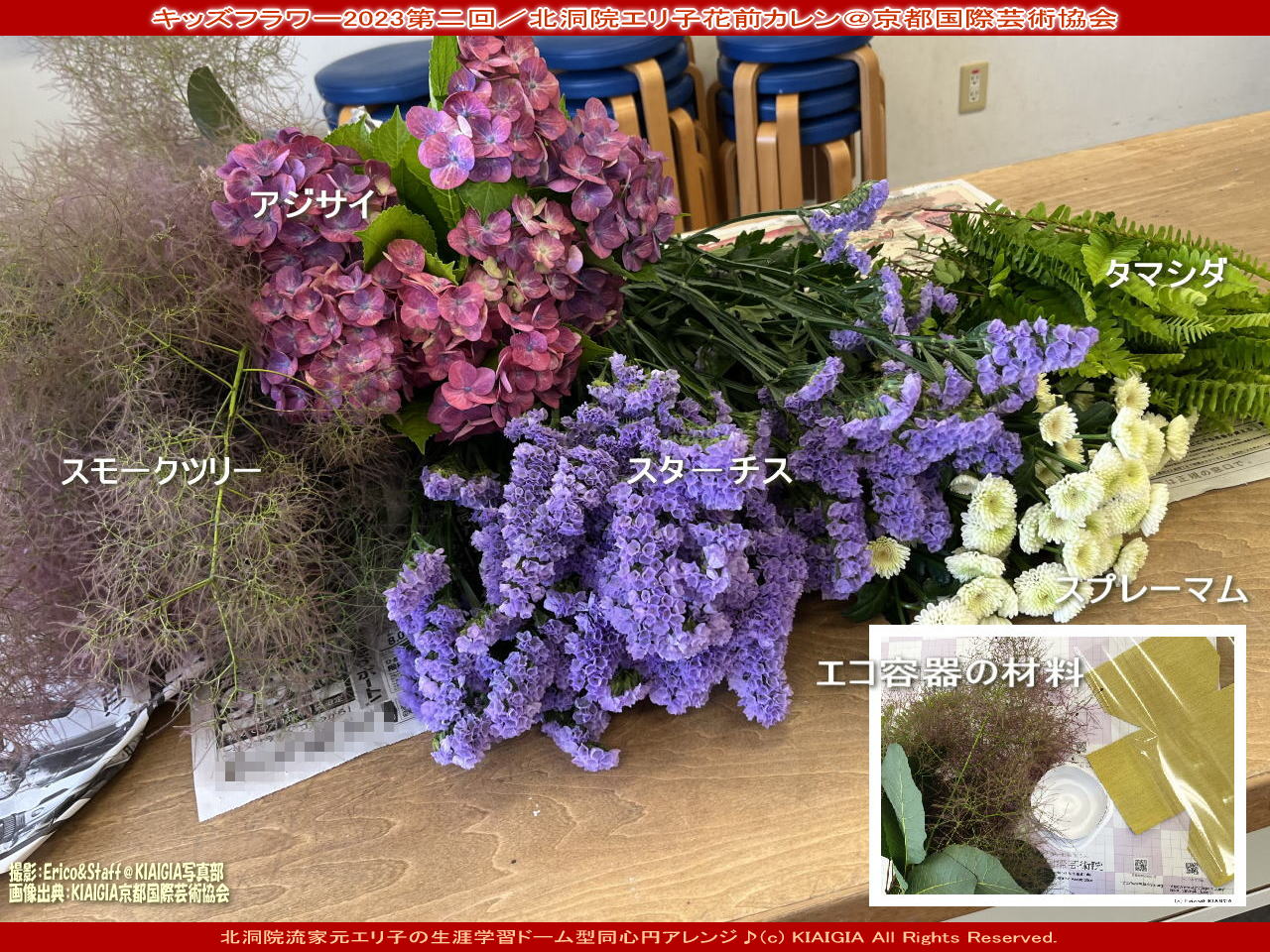 ■タグ=キッズフラワー 2023 定期講座 花前カレン 岸和田市教育委員会 生涯学習 北洞院エリ子 家元エリ子 中瀬君代 京都国際芸術協会