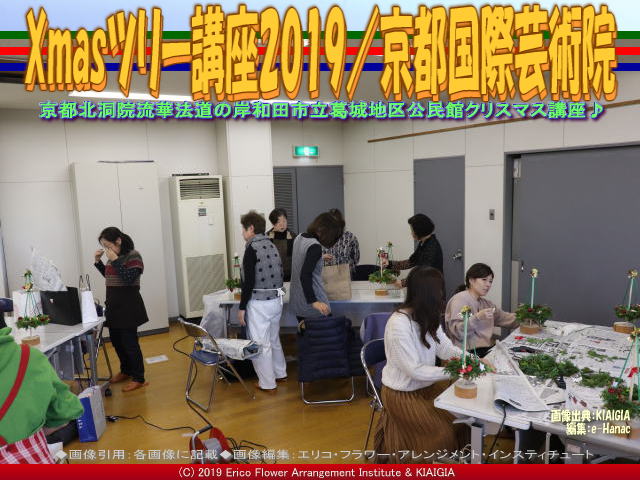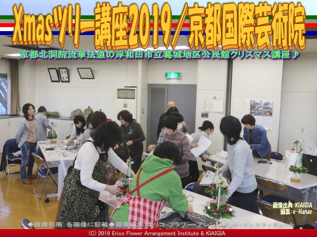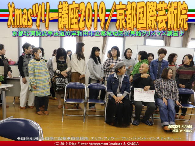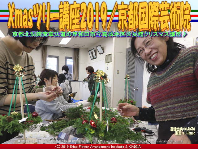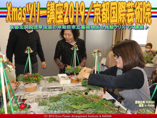 私たち京都四条北洞院流の非営利型一般社団法人京都国際芸術院(法人番号7130005015305/略称:KIAIGIA/キアイジャ/公式ページ/Facebookページ/公式Twitter/代表のTwitter)の私北洞院エリ子花前カレン(公式ブログ、Profile、facebook、Twitter、公式HP1、公式HP2)が、岸和田市教育委員会葛城地区公民館有真香会館(金田隆行館長)さん主催のクリスマスイベントして、先日12月1日(日)にワンオフレッスン「おしゃれなクリスマスツリー」<当学院では、クリスマスXmaasスウィングツリー(クリスマスアレンジ・ノエルツリー「Arbre