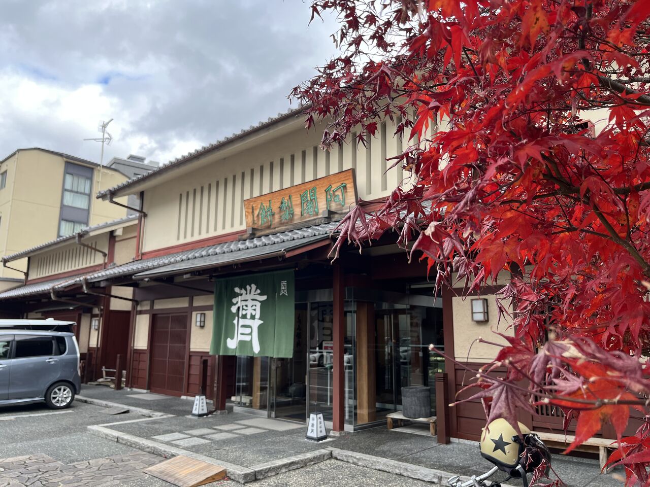 阿闍梨餅本舗京菓子司満月本店の店の前にも