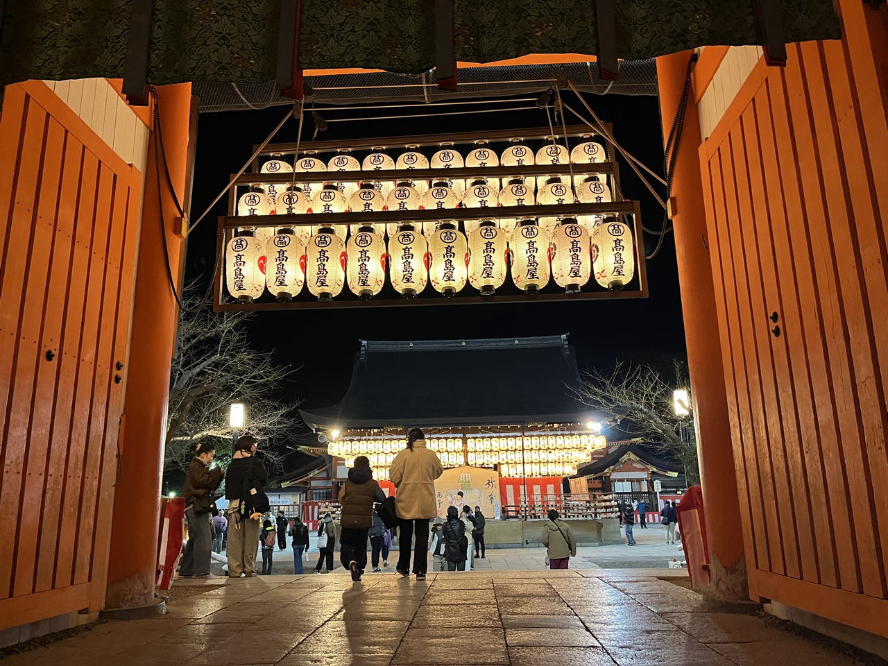 上の画像は、元日の深夜の佐井通側からの京都西院春日神社のワンショットビジュアルです。