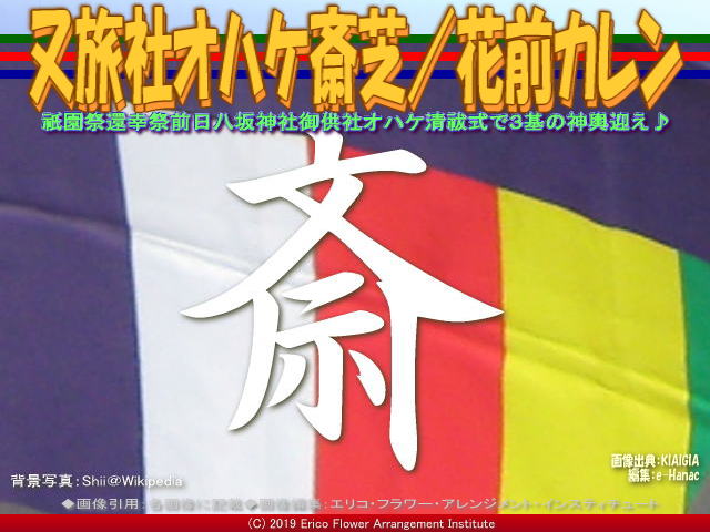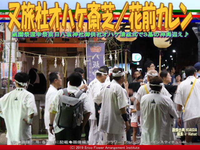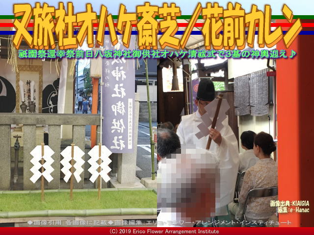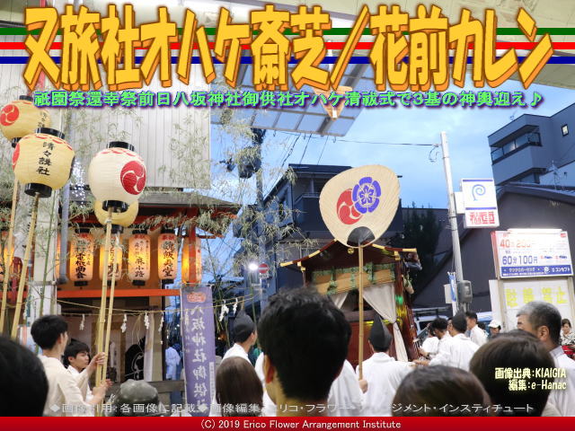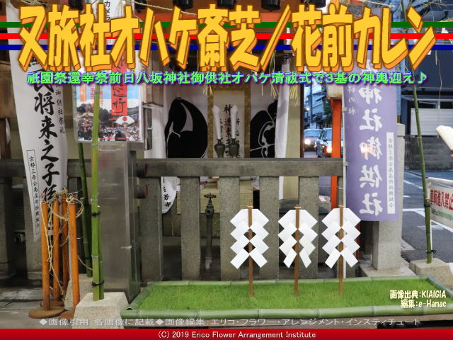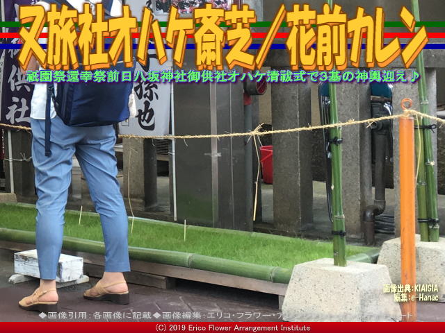 【又旅社オハケ斎芝(8)/花前カレン 01】 今回の紹介ブログは、『又旅社オハケ斎芝(8)/花前カレン』です。 「又旅社オハケ斎芝/花前カレン」ブログについては、今までに以下のブログ 『又旅社オハケ斎芝(7)/花前カレン』 『又旅社オハケ斎芝(6)/花前カレン』 『又旅社オハケ斎芝(5)/花前カレン』 『又旅社オハケ斎芝(4)/花前カレン』 『又旅社オハケ斎芝(3)/花前カレン』 『又旅社オハケ斎芝(2)/花前カレン』 『又旅社オハケ斎芝/花前カレン』 を作成してアップしてあります。 本ブログ画像タイトルは、「又旅社オハケ斎芝/花前カレン」で統一しています。 本ブログデータは以下です。 ■タグ=又旅社 オハケ 斎芝 すさのおのみこと 祇園祭 還幸祭 注連縄 御供社 オハケ清祓式 御幣 ■ハッシュタグ=#又旅社,#オハケ,#斎芝,#すさのおのみこと,#祇園祭,#還幸祭,#注連縄,#御供社,#オハケ清祓式,#御幣 ■サブタイトル=祇園祭還幸祭前日八坂神社御供社オハケ清祓式で3基の神輿迎え♪ ■Twitterとfacebook用コメント=★3本の御幣には素戔嗚尊(中央)、櫛稲田姫命(右)、八柱御子神(左)が移り宿る♪ 本日のブログは、約一ヶ月前に投稿しました「オハケ清祓式」についてさらに情報収集して、タイトル「又旅社オハケ斎芝/花前カレン」と変えてあれこれ書いています。 「オハケ清祓式/北洞院エリ子花前カレン」ブログについては、今までに以下のブログ 『オハケ清祓式(12)/北洞院エリ子花前カレン』 『オハケ清祓式(11)/北洞院エリ子花前カレン』 『オハケ清祓式(10)/北洞院エリ子花前カレン』 『オハケ清祓式(9)/北洞院エリ子花前カレン』 『オハケ清祓式(8)/北洞院エリ子花前カレン』 『オハケ清祓式(7)/北洞院エリ子花前カレン』 『オハケ清祓式(6)/北洞院エリ子花前カレン』 『オハケ清祓式(5)/北洞院エリ子花前カレン』 『オハケ清祓式(4)/北洞院エリ子花前カレン』 『オハケ清祓式(3)/北洞院エリ子花前カレン』 『オハケ清祓式(2)/北洞院エリ子花前カレン』 『オハケ清祓式/北洞院エリ子花前カレン』 を作成してアップしてあります。 今回の話題は京都祇園祭の神事の一つ、「オハケ清祓式」です。 因みに、京都祇園祭は7月1日から31日の一ヶ月間営まれました。 今年2019年令和元年の京都祇園祭は1150年の節目を迎えました。 京都大好きの私北洞院エリ子こと、エリ子花前カレン(公式ブログ、Profile、facebook、Twitter、公式HP1、公式HP2)は、京都祇園祭一ヶ月のお祭り期間の間出来るだけ時間を割いて観てきました。 感激覚めやらぬ間にブログ記事を書いています。 「オハケ清祓式」や「北野天満宮七夕祭」や「京都五山送り火松ヶ崎妙法」などの京都関係のブログや動画は以下 ■YouTube動画 『「妙法」京都五山送り火@京都国際芸術院』 『京都五山送り火「法」@京都国際芸術院』 『京都五山送り火「妙」@京都国際芸術院』 京都国際芸術院のYouTubeチャンネル 『YouTube五山送り火妙法/花前カレン』 『YouTube五山送り火・法/北洞院エリ子』 『YouTube五山送り火・妙/花前カレン』 『誰もいない京都北野天満宮/京都国際芸術院』YouTube動画 『北野天満宮後日譚(3)/花前カレン』 『北野天満宮後日譚(2)/花前カレン』 『北野天満宮後日譚/花前カレン』 『五山送り火(4)/北洞院エリ子花前カレン』 『五山送り火(3)/北洞院エリ子花前カレン』 『五山送り火(2)/北洞院エリ子花前カレン』 『五山送り火/北洞院エリ子花前カレン』 『北野天満宮七夕祭(10)/花前カレン』 『北野天満宮七夕祭(9)/花前カレン』 『北野天満宮七夕祭(8)/花前カレン』 『北野天満宮七夕祭(7)/花前カレン』 『北野天満宮七夕祭(6)/花前カレン』 『北野天満宮七夕祭(5)/花前カレン』 『北野天満宮七夕祭(4)/花前カレン』 『北野天満宮七夕祭(3)/花前カレン』 『北野天満宮七夕祭(2)/花前カレン』 『北野天満宮七夕祭/花前カレン』 『オハケ清祓式(12)/北洞院エリ子花前カレン』 『オハケ清祓式(11)/北洞院エリ子花前カレン』 『オハケ清祓式(10)/北洞院エリ子花前カレン』 『オハケ清祓式(9)/北洞院エリ子花前カレン』 『オハケ清祓式(8)/北洞院エリ子花前カレン』 『オハケ清祓式(7)/北洞院エリ子花前カレン』 『オハケ清祓式(6)/北洞院エリ子花前カレン』 『オハケ清祓式(5)/北洞院エリ子花前カレン』 『オハケ清祓式(4)/北洞院エリ子花前カレン』 『オハケ清祓式(3)/北洞院エリ子花前カレン』 『オハケ清祓式(2)/北洞院エリ子花前カレン』 『オハケ清祓式/北洞院エリ子花前カレン』 『京都観光都市世界一(2)/北洞院エリ子』 『京都観光都市世界一/北洞院エリ子』 『くじ取り式(4)/北洞院エリ子花前カレン』 『くじ取り式(3)/北洞院エリ子花前カレン』 『くじ取り式(2)/北洞院エリ子花前カレン』 『くじ取り式/北洞院エリ子花前カレン』 『祇園祭(5)/北洞院エリ子花前カレン』 『祇園祭(4)/北洞院エリ子花前カレン』 『祇園祭(3)/北洞院エリ子花前カレン』 『祇園祭(2)/北洞院エリ子花前カレン』 『祇園祭/北洞院エリ子花前カレン』 『祇園祭2019蟷螂山(5)/花前カレン』 『祇園祭2019蟷螂山(4)/花前カレン』 『祇園
