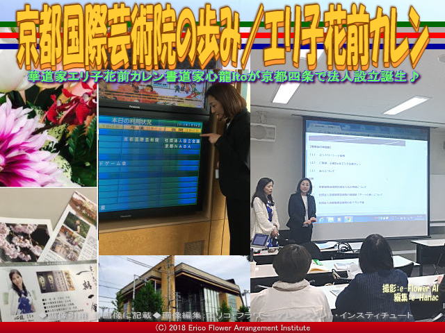 【京都国際芸術院の歩み/エリ子花前カレン 01】 今回の紹介ブログは、『京都国際芸術院の歩み/エリ子花前カレン』です。 画像タイトルは、<京都国際芸術院の歩み/エリ子花前カレン>で統一しています。 サブタイトルは、<華道家エリ子花前カレンと書道家心龍Itoが京都四条で法人設立誕生♪>としています。 タグは<京都国際芸術院、エリ子、花前、カレン、華道家、書道家、心龍Ito、京都四条、法人設立、一般社団法人>としています。 | ||||