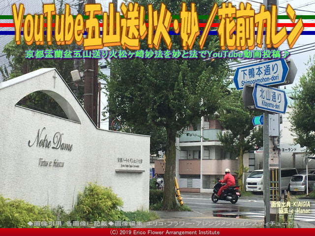 千年の都古都京都のお盆の行事といえば、まず第一に思い浮かぶのは京都五山送り火大文字です。 今年令和元年2019年のお盆は、私北洞院エリ子こと、エリ子花前カレン(公式ブログ、Profile、facebook、Twitter、公式HP1、公式HP2)は、映像や画像では今まで実際には見たことのない京都五山送り火松ヶ崎妙法を見学・取材することになりました。 理由は簡単です。 我が京都四条北洞院流の非営利型一般社団法人京都国際芸術院(法人番号7130005015305/略称:KIAIGIA/キアイジャ/公式ページ/Facebookページ/公式Twitter/代表のTwitter)北大路WSS(下鴨北大路ワークショップオフィス)の窓からは、北大路通りに面しているので前の建物と角度の関係から「妙」の一部が見えるからという極当たり前の動機からです。 【YouTube五山送り火・妙/花前カレン 02】 さて、年の都古都京都五山送り火の松ヶ崎「妙法」の見学の模様については後日の記事を書きますが、まずは当日8月16日、iPhoneで動画撮影をしましたのでそれを編集してYouTubeにアップしようと思います。 京都五山送り火松ヶ崎妙法の「妙」の字の観覧スポット(ビューイングスポット)は北山通の京都ノートルダム女子大学付近と紹介されています。 私北洞院エリ子は一度京都ノートルダム女子大学を見たかったのでついでに見てきました。 上の画像は北山通りと下鴨本通りの交差点で撮影したワンショットビジュアルです。 お洒落な大学です。 憧れますね。 以下は、私がYouTubeに投稿した京都五山送り火「妙」松ケ崎の西山・万灯籠山のYouTube動画のデータです。 ■動画タイトル=京都五山送り火「妙」@京都国際芸術院 □URL: こちらから https://youtu.be/wICL0WwyeoI □サブタイトル=京都五山送り火「妙」/松ケ崎の西山・万灯籠山@京都国際芸術院 □タグ=京都五山送り火、妙法、松ケ崎、西山、万灯籠山、京都国際芸術院、北洞院エリ子、花前カレン、心龍吉祥院、心龍 □ハッシュタグ=#京都五山送り火、#妙法、#松ケ崎、#西山、#万灯籠山、#京都国際芸術院、#北洞院エリ子、#花前カレン、#吉祥院心龍、#心龍 □動画種類: MP4ビデオ(.mp4) □動画時間: 00:01:02 □動画サイズ: 37.9 MB (39,818,983 バイト) □動画大きさ: 1280x720(HD) □撮影日時: 2019年令和元年午後8時5分過ぎ □撮影: 北洞院エリ子花前カレン@KIAIGIA □ビデオ編集: 北洞院エリ子花前カレン&KIAIGIA動画倶楽部 □関連ページ: 京都国際芸術院のYouTubeチャンネル 実際、このビデオを撮影したのは、京都五山送り火松ヶ崎妙法の「妙」の字が間近で観れる観覧スポット(ビューイングスポット)、有名な宝池自動車教習所の構内からです。 当日は宝池自動車教習所のご厚意で構内は開放されていました。 宝池自動車教習所の皆様、ありがとうございました。 さて、私北洞院エリ子花前カレンが制作したYouTube動画、是非ともご覧いただければ幸いです。・・・つづく ■AboutUs(1) このブログページは、我が非営利型一般社団法人京都国際芸術院(法人番号7130005015305/略称:KIAIGIA/キアイジャ/公式ページ/Facebookページ/公式Twitter/代表のTwitter)花の代表、北洞院流華法道の家元として指揮を執る私北洞院エリ子花前カレン(公式ブログ、Profile、facebook、Twitter、公式HP1、公式HP2)が管理者です。 ■AboutUs(2) 我が非営利型一般社団法人京都国際芸術院は、昨年2018年5月に京都中京の四条に法人設立した組織です。設立当初は、書と花をコアにして、書は、吉祥院心龍北洞院流書法道正師範(公式ブログ、公式Blog2アメブロ、facebook、Instagram、YouTube、公式HP)、そして花は私北洞院エリ子花前カレンの二人で、京都と大阪と兵庫で活動しています。 ■AboutUs(3) 設立の2018年は私は、特に一般社団法人京都国際芸術院の設立(『社団法人化への歩み(6)/京都国際芸術院』など)や奈良ホテルでの記念式典(『奈良ホテル書花展(10)/京都国際芸術院』など)、出版事業部の初仕事(『アートの旅/一般社団法人京都国際芸術院』『アートの旅美術館/エリ子花前カレン』『アートの旅facebook記事/京都国際芸術院』『アートの旅松本編集長/京都国際芸術院』など)、産直市場よってって新規開店(『よってって和泉中央(4)/エリ子花前カレン』など)でのプロパー作品展示販売、そして公式ページの立上げやFcebookページやTwitterの開設、そして個人的には動画編集ビデオ制作の学習(『ビデオ制作勉強会(9)/エリ子花前カレン』など)等、ネット関連の仕事も増えて、有難くもどんどん忙しくなってきました。 ■AboutUs(4) 2019年4月には京都下鴨北大路通りに北大路WS2(ワークショップ・スタジオ)を開設しました。※改装準備中の画像(※引用『北洞院流スタジオ改造(8)/京都国際芸術院』など)はこちら。 ■AboutUs(5) 最近の我が非営利型一般社団法人京都国際芸術院の実働としては、書と花と出版をメインテーマにして、教室運営、出張講座、イベント企画と運営、出版、ウェッブ授業とデジタルコンテンツ作成と提供、京都四条北洞院流書法道と華法道認定の各師範の作品開発・頒布販売(<令和時代><作品価格@令和時代>)などを行っています。 
