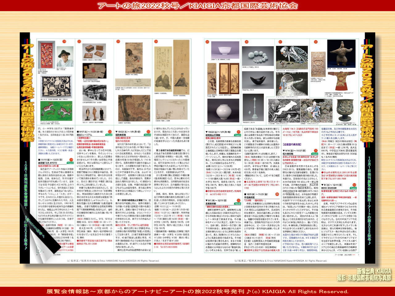 上のタイトル画像01は、当京都国際芸術協会機関紙<展覧会情報誌~京都からのアートナビ~「アートの旅2022秋号」>Web用KIAIGIAブックの6・7ページを見開いているワンショットビジュアルです。