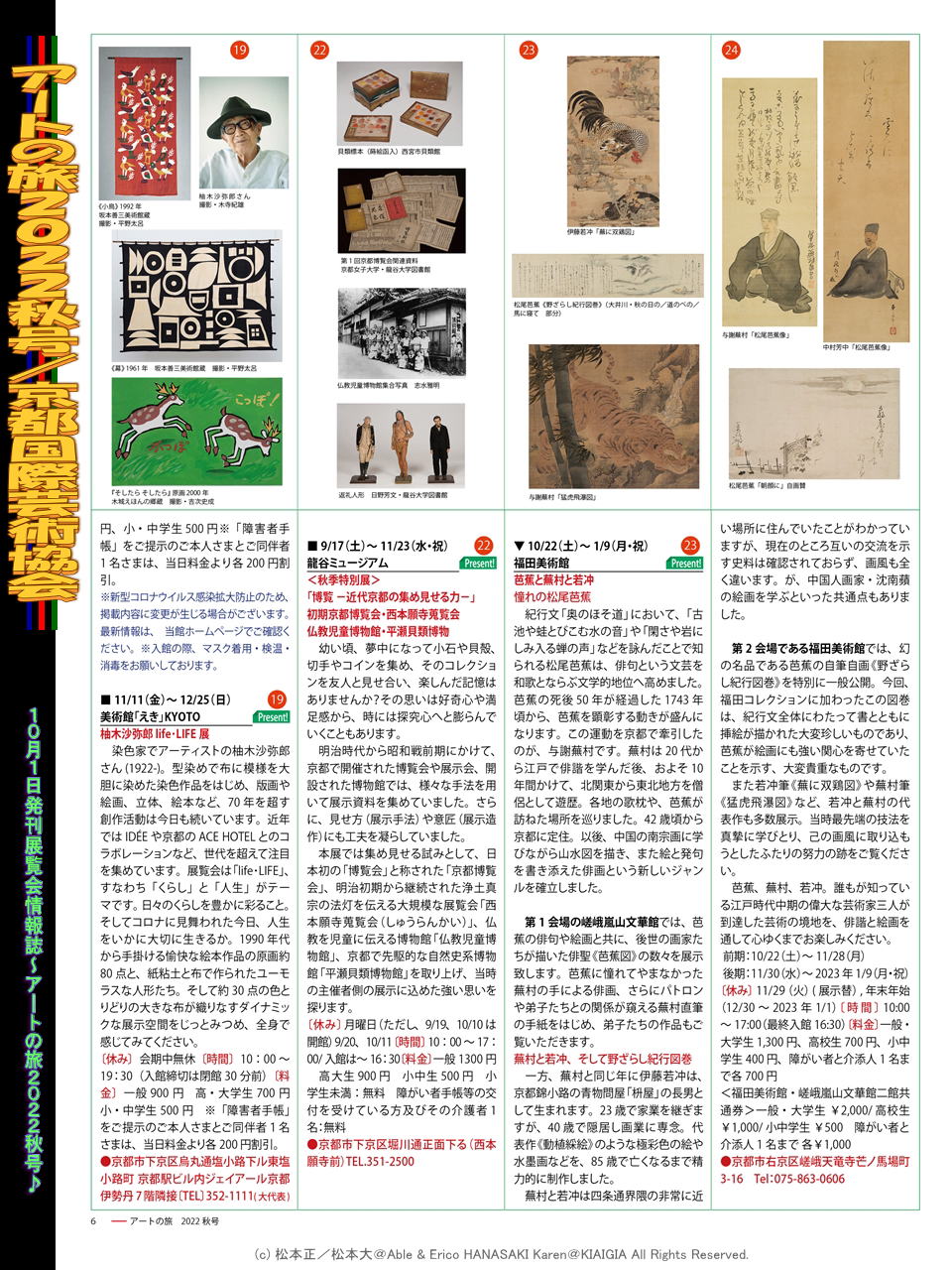 ■サブタイトル=美術館展覧会情報誌アートの旅2022秋号10月1日京都から発刊♪(c)