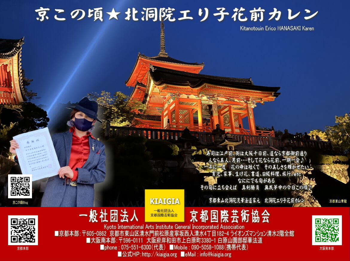 「お花や華道」や「フラワーアレンジメント」や「お料理・暦のごはん」や「健康と美容」などで、キッズから老若男女を問わず市民の皆さんのお役に立ててとても光栄、嬉しく感じています<京この頃>家元エリ子こと、北洞院エリ子花前カレンの今日この頃です。