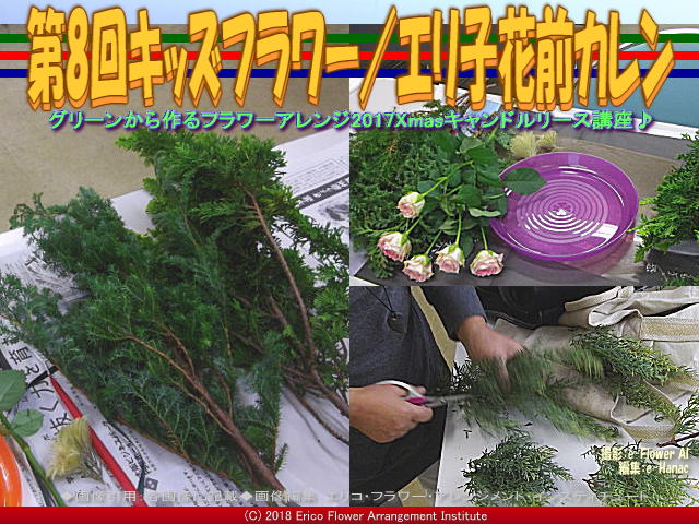 【第8回キッズフラワー(3)/エリ子花前カレン 01】 今回の紹介ブログは、『第8回キッズフラワー(3)/エリ子花前カレン』です。 前回(昨日)のブログ『第8回キッズフラワー(2)/エリ子花前カレン』の続きです。 前々回(一昨日)のブログ『第8回キッズフラワー/エリ子花前カレン』から続いています。 画像タイトルは、<第8回キッズフラワー(3)/エリ子花前カレン>としています。 サブタイトルは、<グリーンから作るフラワーアレンジ2017Xmasキャンドルリース講座♪>としています。 タグは<第8回、キッズフラワー、エリ子、花前カレン、グリーン、フラワーアレンジ、2017、Xmas、キャンドル、リース>としています。 2017年11月キッズフラワーレッスンは、クリスマスツリーを教材にして、岸和田市中央公民館まつりに参加しました。初めてYouTubeに『公民館まつり2017/岸和田市立中央地区公民館』というタイトルでアップしています。 キャンドルリースについては、昨年2017年岸和田市教育委員会生涯学習部生涯学習課の岸和田市立葛城地区公民館有真香会館公募のクリスマスシーズンのみの公民館フラワーアレンジメントとして、ワンオフレッスン「Xmas2017キャンドルリース/葛城地区公民館」を、私プロフローリスト、エリ子花前カレンがインストラクターを務めさせて頂きました。以下のブログ 『Xmas2017キャンドルリース(6)/葛城地区公民館』 『Xmas2017キャンドルリース(5)/葛城地区公民館』 『Xmas2017キャンドルリース(4)/葛城地区公民館』 『Xmas2017キャンドルリース(3)/葛城地区公民館』 『Xmas2017キャンドルリース(2)/葛城地区公民館』 『Xmas2017キャンドルリース/葛城地区公民館』 を作成してアップしてあります。 | ||||
