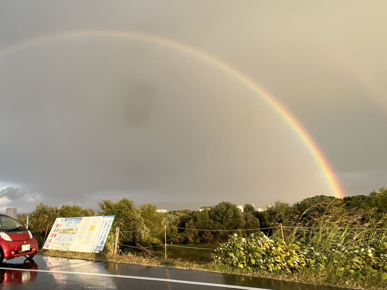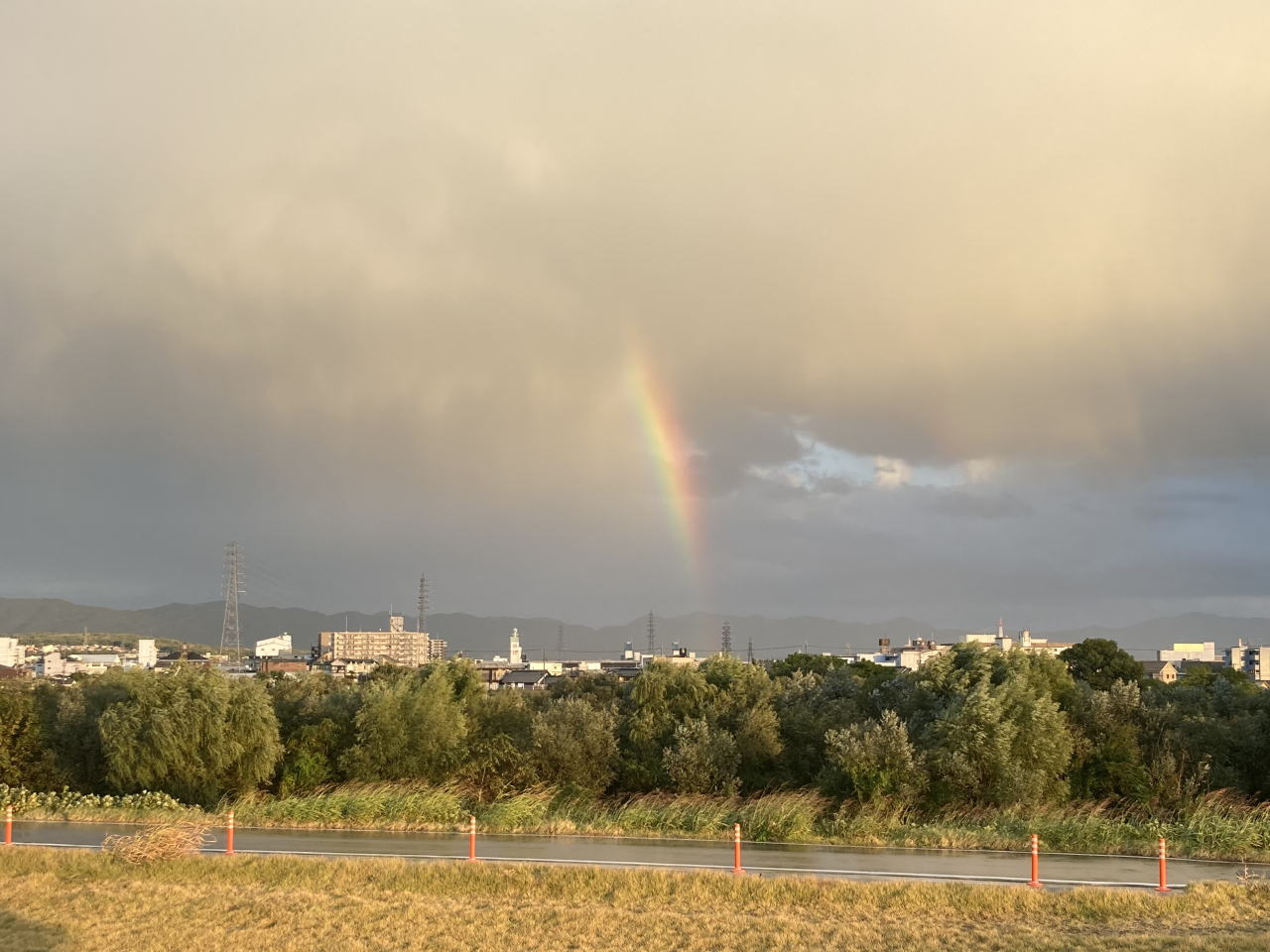 前が桂川なので視界には遮(さえぎ)るものもなく、虹全体がくっきり見えました。