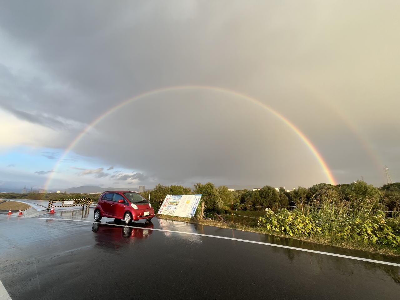 銀行からの帰り道突然の雨、晴れると虹。人生で初めて見た完璧虹!幸せの虹の橋のたもとを追いかけて…