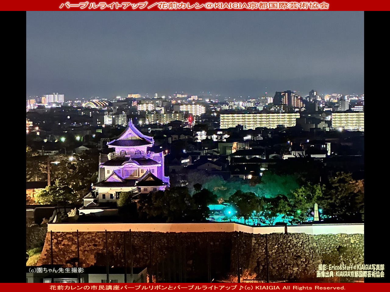 ■Xツィート(元Twitter)とfacebook用コメント=園ちゃん先生西村園子さんの写真は貴重で岸和田城と岸和田城庭園~八陣の庭のパープルライトアップが収まっていた♪