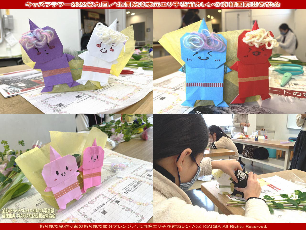 ■タグ=キッズフラワー 花前カレン 節分アレンジ 鬼の折り紙 鬼作り 鬼の器 北洞院流 家元エリ子 北洞院エリ子 京都国際芸術協会