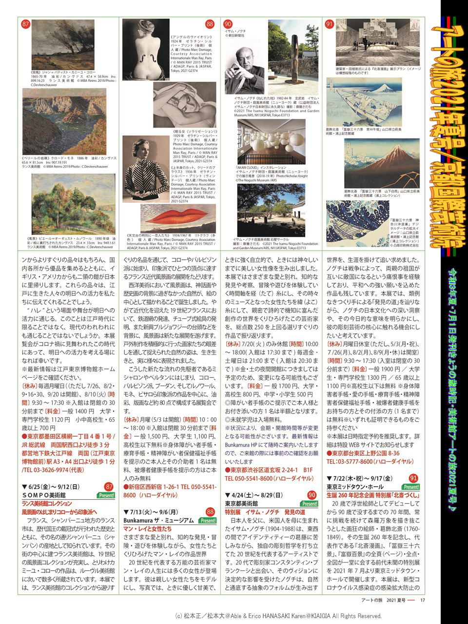 <きょうの歳時記・美術館情報誌「アートの旅2021年夏号」>の12ページ目と13ページ目のビジュアルワンショットです。