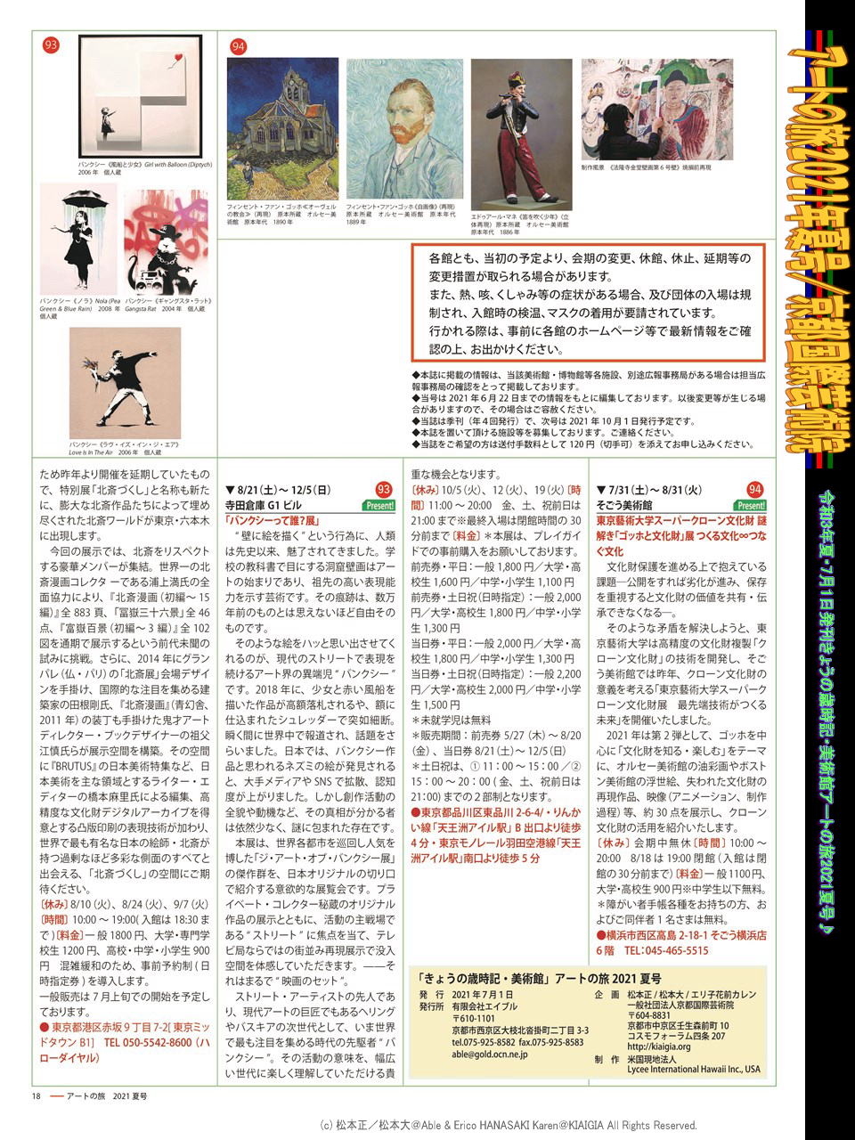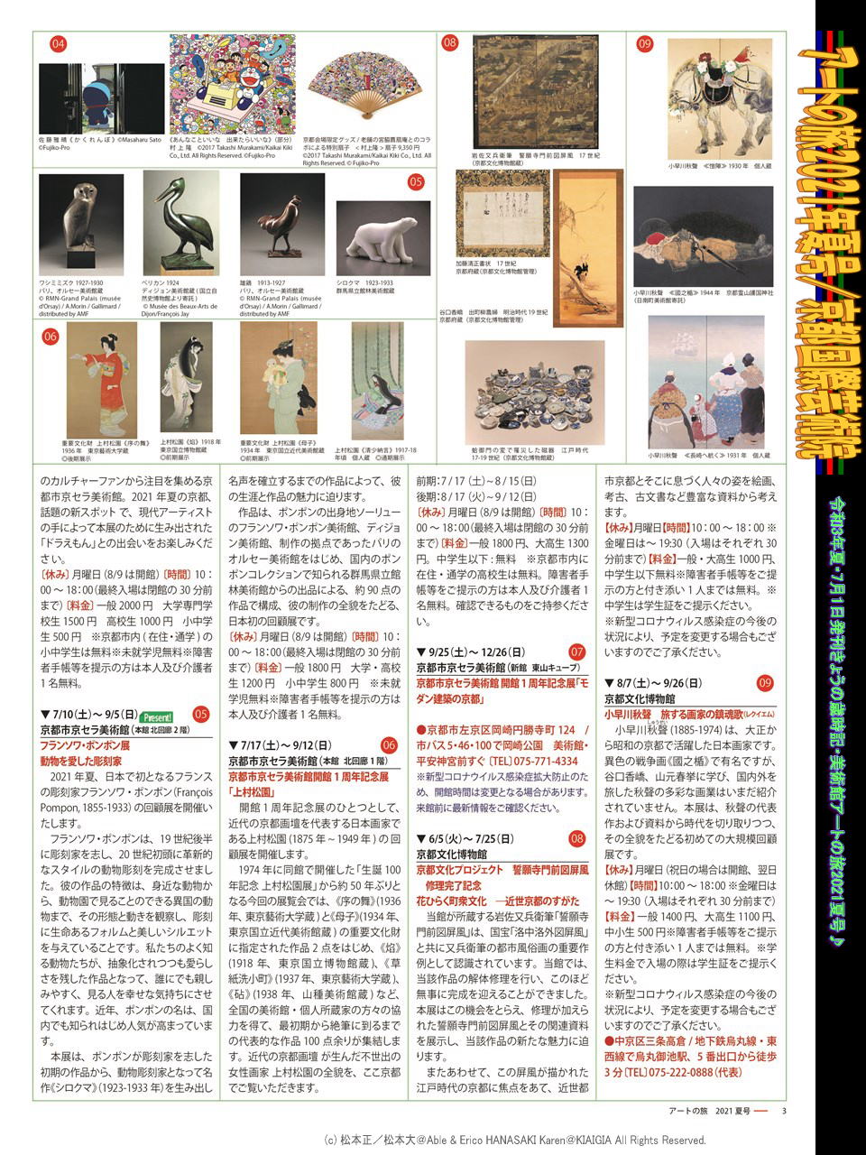今回の<きょうの歳時記・美術館情報誌「アートの旅2021年夏号」>も広告スポンサーの皆様にはお世話になっております。